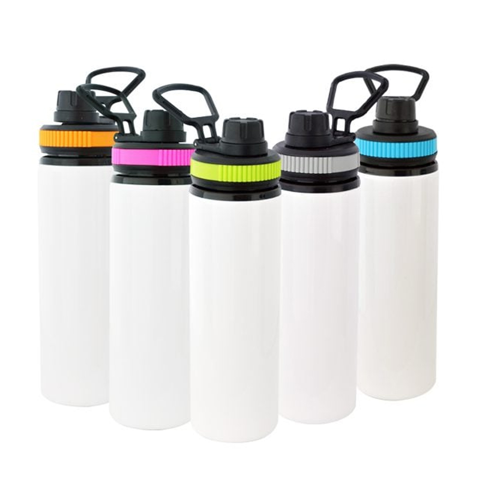 Funcional y estilizada, esta botella de 750ml cuenta con un práctico pico roscable de color. Su diseño blanco es ideal para personalizar, perfecta para mantenerte hidratado en cualquier momento.